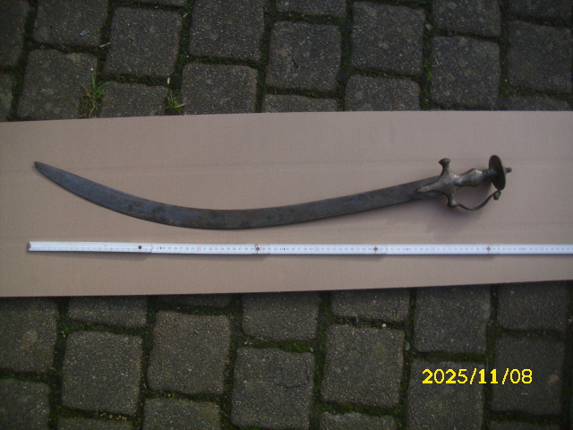 Verkaufe hier einen schönen asiatisch - indischen Säbel, in gebrauchtem Zustand, wie abgebildet. Ich meine, da ist auch noch eine Punze in der Klinge am Griff, vorletztes Bild. Experten wissen da sicher mehr. Den weiteren Zustand entnehmen Sie bitte den Bildern, die auch Bestandteil der Artikelbeschreibung sind.