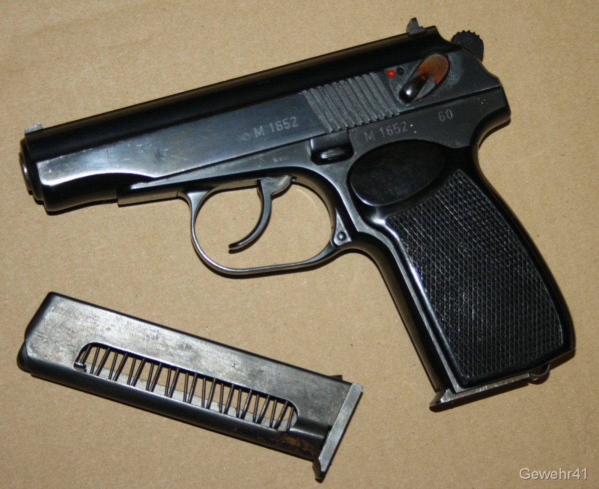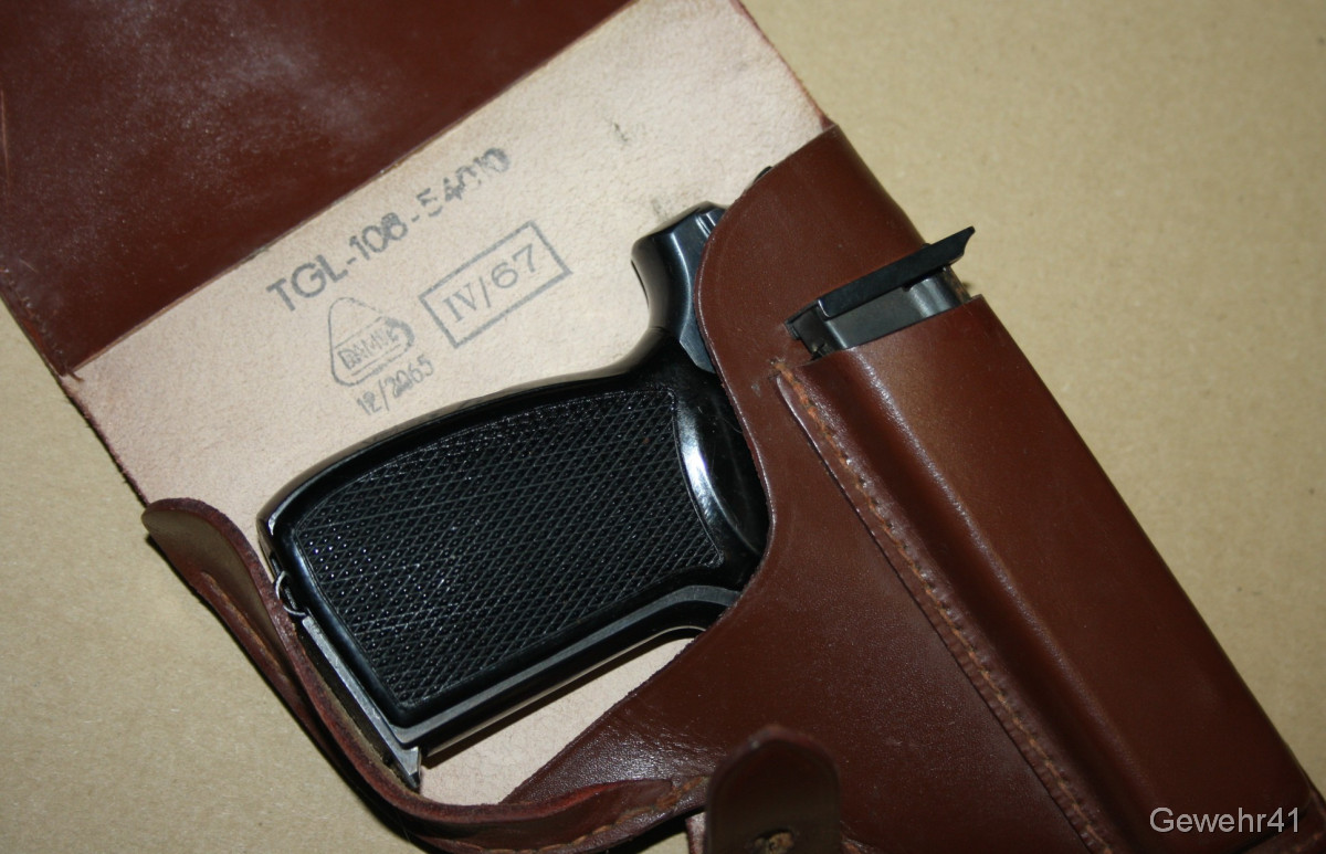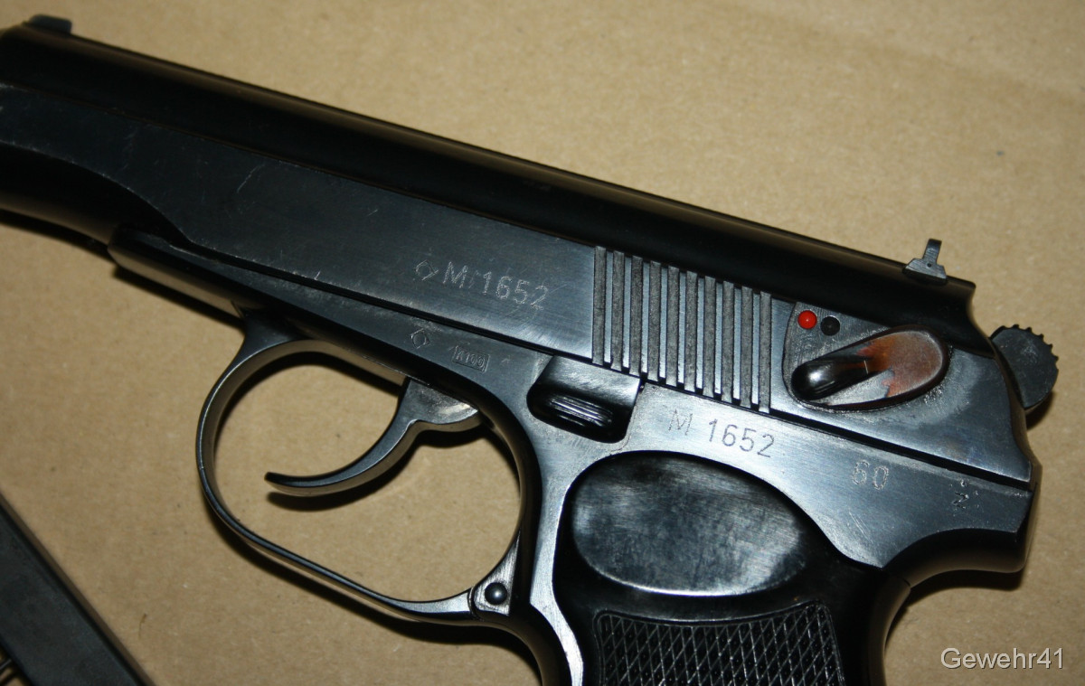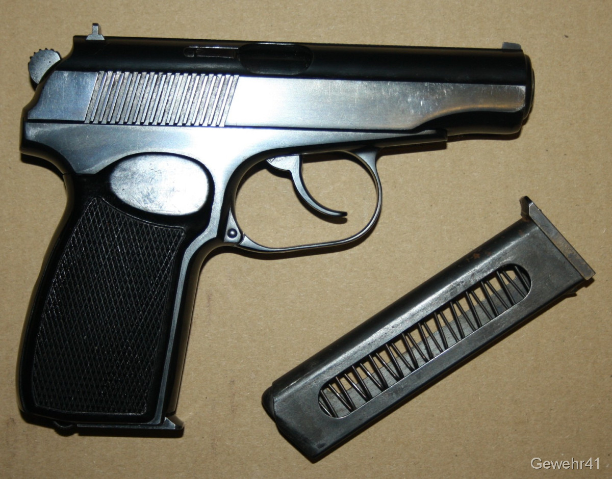 Sie bieten auf diese originale Suhler Pistole Makarov PM im Kal. 9mm Mak. Einwandfreier, schöner Zustand und komplett mit Holster und Ersatz-Magazin. Ohne gültigen Beschuss, daher Verkauf nur an Händler und Sammler. Lauf und Funktion einwandfrei.