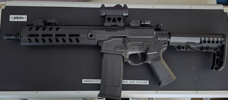 Hallo, biete hier von Umarex die Strike Force CO2 in 4,5mm BB, Schwarz. Die waffe hat keine gebrauchspuren, wurde nicht geschossen, ist neu. Die waffe ist aus Metall und Kunstoff und hat blowback. Mit dabei ein waffenkoffer, anleitung und Red Dot. Alles funktioniert einwandfrei.