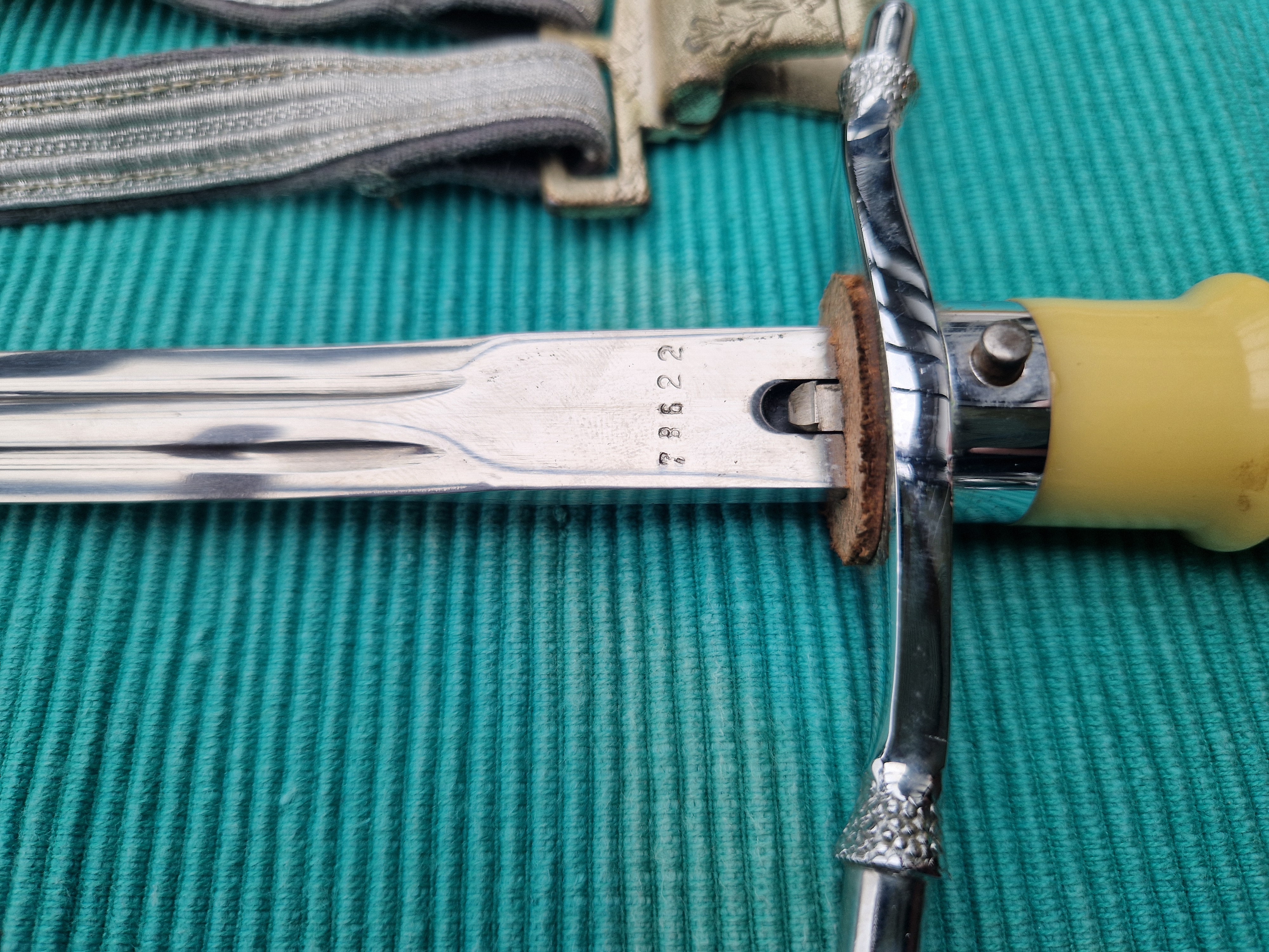 Blanke Klinge mit eingeschlagener Nummer "78622" und auf der anderen Seite Abnahmestempel,
