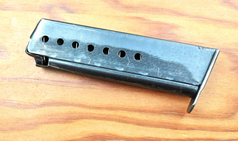 Die originale Brünierung ist noch fast vollständig vorhanden. Unter der Brünierung markante typische Frässpuren an der linken Magazinseite. Nur geringe Gebrauchs und Lagerspuren. Die Funktion ist ungestört. Feder stramm.