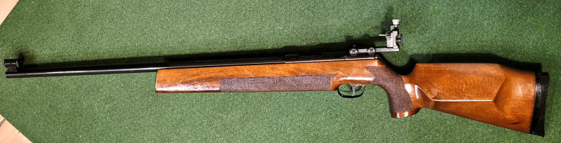 Sie bieten auf ein Weihrauch KK Mod2000TS. Die Waffe hat einen 68cm langen Lauf, eine Höhenverstellbare Schaftkappe, eine UIT Schiene unter dem Vorderschaft und ein Adlerauge, (Optik) im Korntunnel. Bei der Visierung handelt es sich um ein Präzisionsdiopter mit Höhen und Seitenverstellung.Die Waffe ist in einem sehr Guten Zustand und hat keinen Rost oder größere Beschädigungen am Schaft. Siehe Bilder