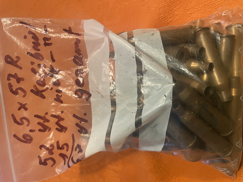 Hülsen 6,5x57R, RWS, gesamt 67 Stück, davon 52 Stück kalibriert und 15 Stück nicht kalibriert