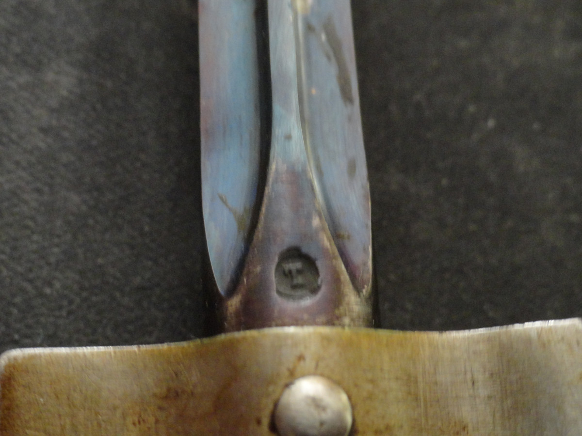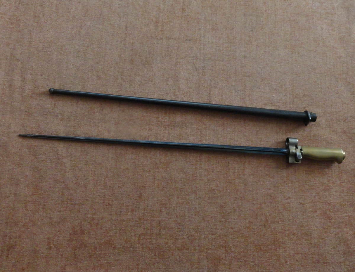 Epee-Lebel Bajonett 1886/93/16 Frankreich. In neuwertiger Erhaltung am Klingenende Punze siehe Foto ansonsten keine weitere Stempel oder Nummern. Klingenlänge ca 516 mm Laut Literatur ( Hugo Schürer Bajonette) wurde das Bajonett auch in Polen, Griechenland und Jugoslawien geführt (Exportmodell??)