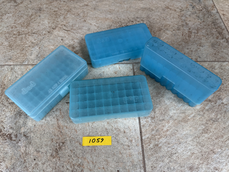 Sie bieten hier auf die Reste eines Wiederladers. 3 Patronenboxen von J&J für .45 Auto und einmal für Gewehrpatronen bis Größe 30-06. Es handelt sich hier um gebrauchtes Zubehör, siehe Foto. Sie bieten auf das ganze Konvolut auf dem Foto. Startpreis 1€. Versand mit DHL: Deutschland 7,99€ / EU-Versand 15,99€