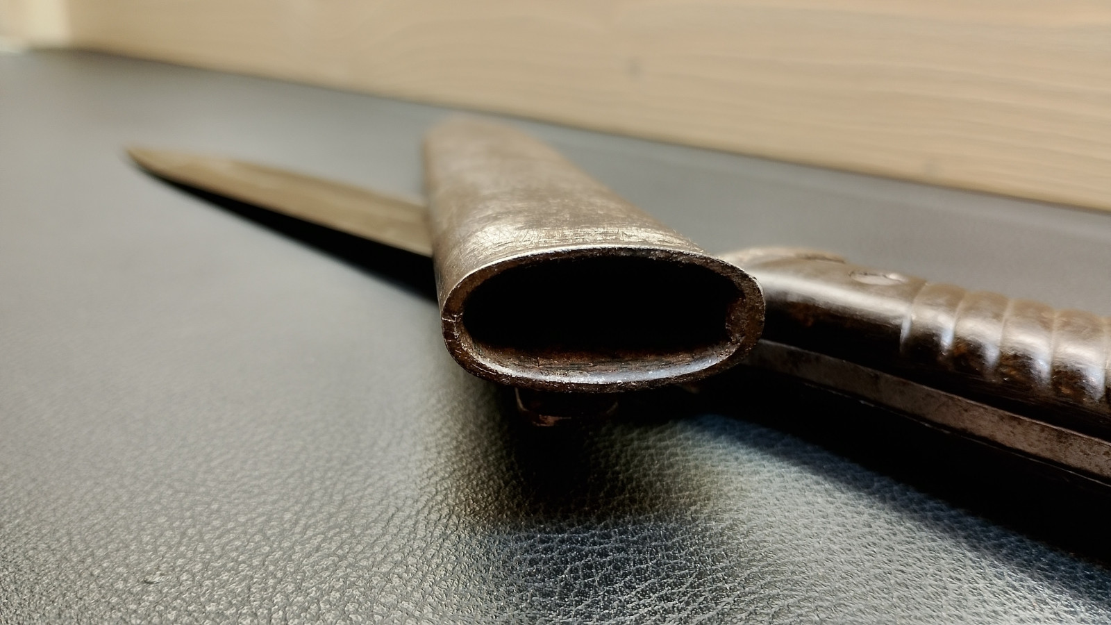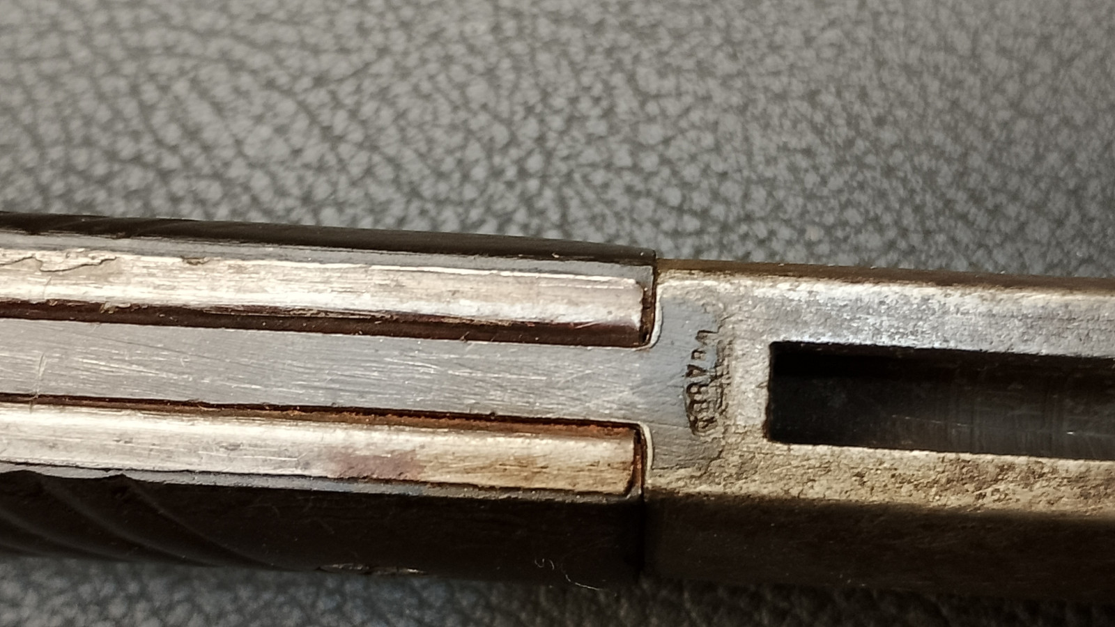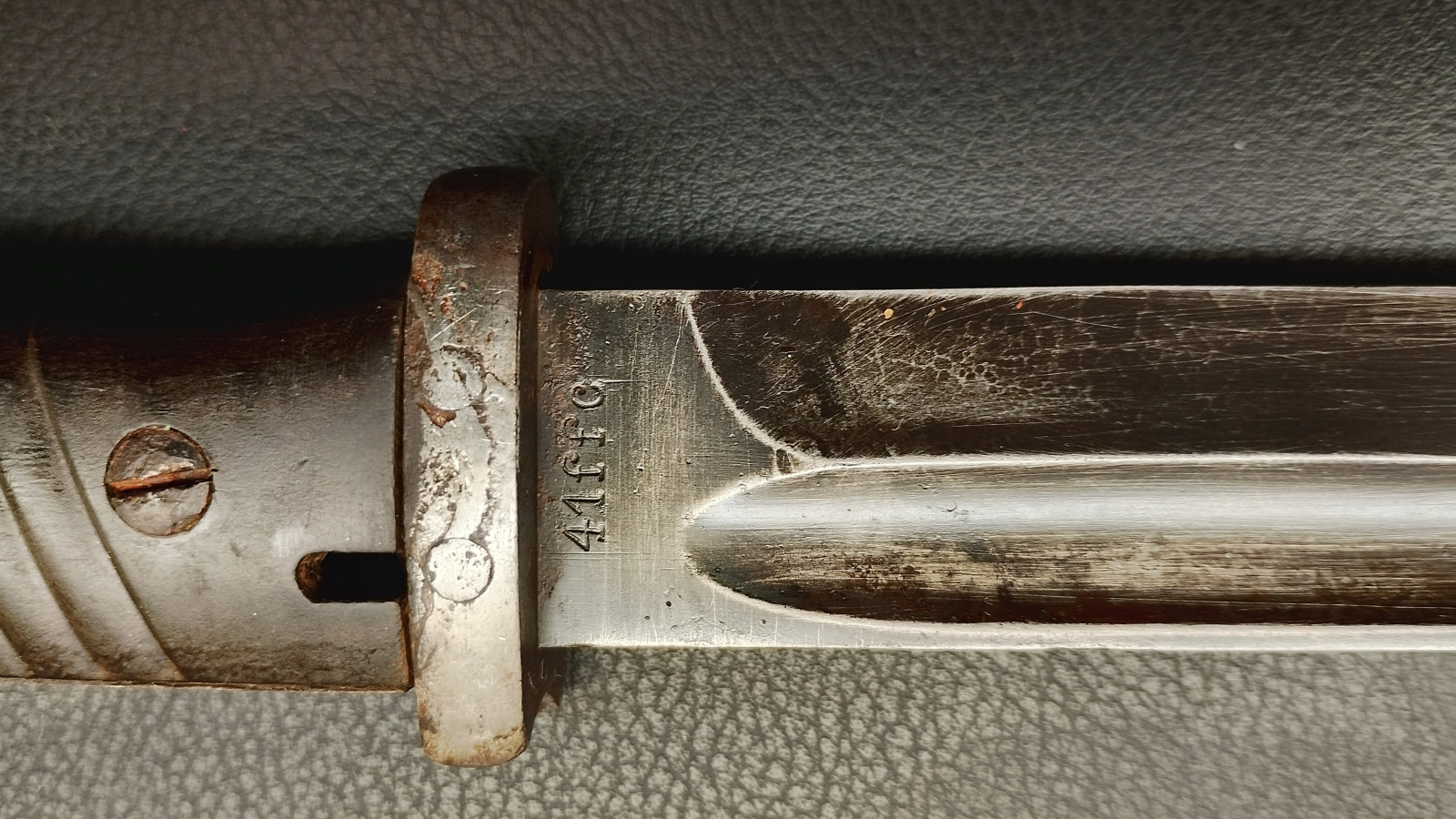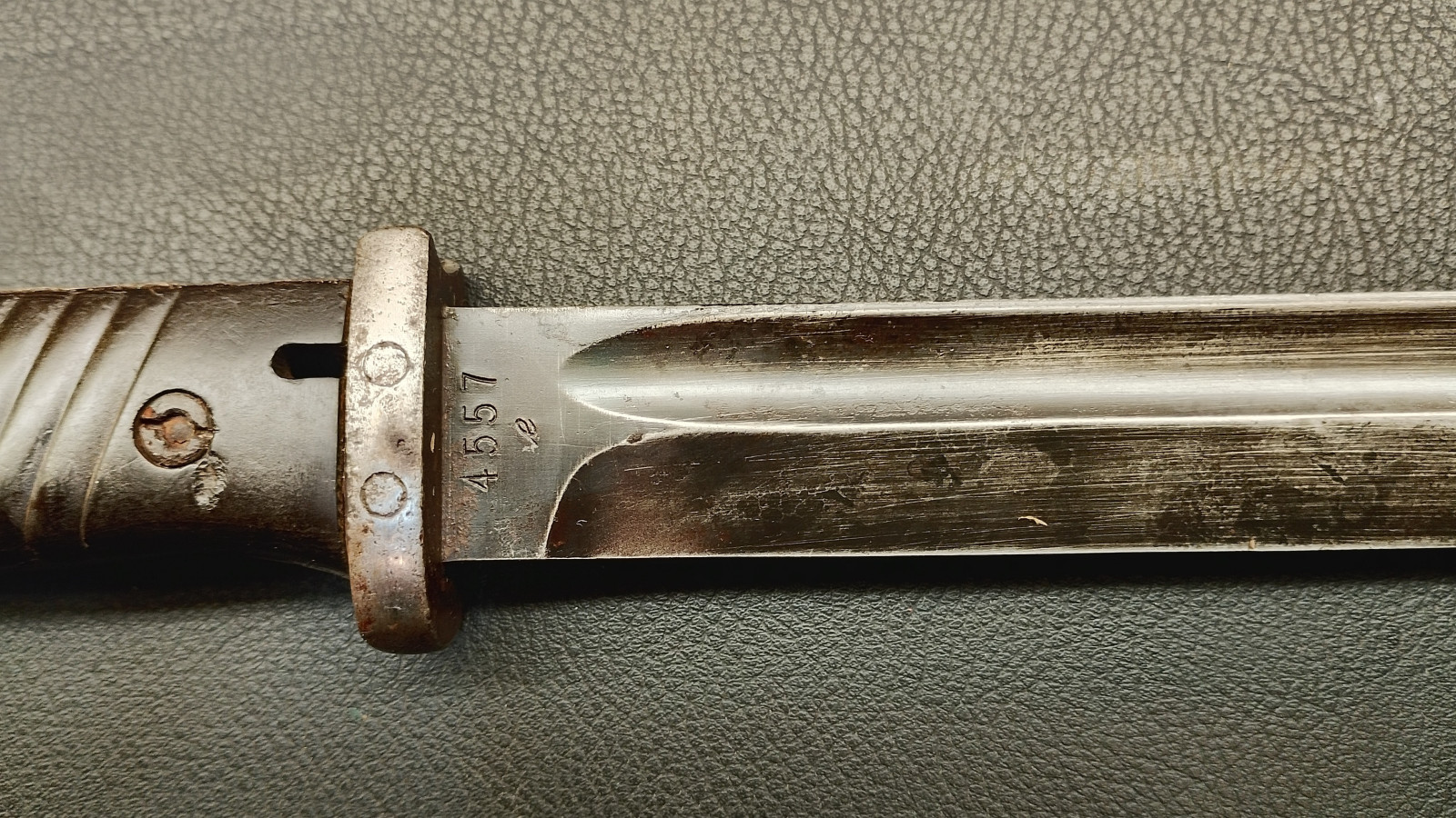 Verkaufe aus meiner Sammlung: Bajonett 84/98 ,WaA 883 , Klinge rechts 4557 , Klinge links 41 f f c ,Klingenlänge 25,2 , Gesamtlänge ohne Scheide 38,5 cm , Drücker leichtgängig , Scheide nicht Nummerngleich , Bestempelt mit E.u.F Hörster 1938 . Erhaltungszustand ist Ansichtssache . Bitte schätzen Sie den Zustand des angebotenen Artikels anhand der Bilder selbst ein .Bilder sind Gegenstand der Auktion . ,,,,,,Viel Spass beim Bieten,,,,