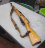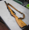 1 russischen Karabiner aus dem 2. Weltkrieg – Modell 44 –  Kaliber 7,62 x 54 R - mit angeklapptem Bajonett  und Gewehrriemen– Hülsenbrücke und Magazinschacht haben die gleiche Nummer – der Verschluß hat eine andere Nummer. Das ist bei den russischen Waffen keine Seltenheit -  Hülsenbrücke : Staatswappen der UdSSR mit Herstellungsjahr 1944 sowie Dreieck mit Pfeil zum Laufende.
