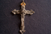 Kettenanhänger Skelett am Kreuz. Aus 925er Sterlingsilber und 18 k Gelbgold. Rückseitig gestempelt: S 925, G 18ct. Sehr filigran gearbeitet. Die feine Dornenkrone und die Nägel am Kreuz bestehen auch aus Gold. Neu und ungetragen mit Beutel und aufbewahrungsdose aus Metall. Das Kreuz ist 5 x 7 cm und wiegt 22g.