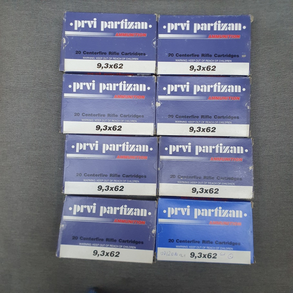 Sie bieten auf 160 Prvi Partizan Patronenhülsen Kaliber 9,3x62 und 100 Prvi Partizan 9,3x62 Teilmantelgeschosse 18,5 Gramm/285 Grain