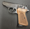 Sie bieten auf eine Gebrauchsspistole Walther PPK/S Kal.22lr. mit Beschuss von 1973 und Holzgriffschalen. Die Waffe ist in einem neuwertigen Zustand, der Lauf ist spiegelblank.