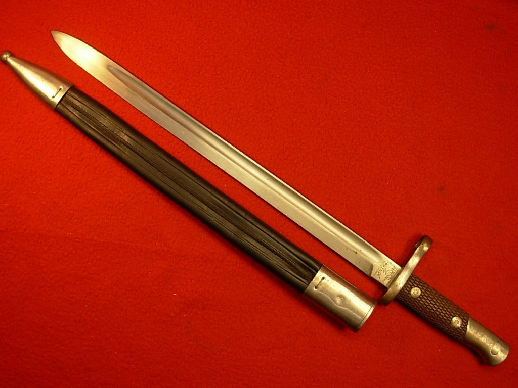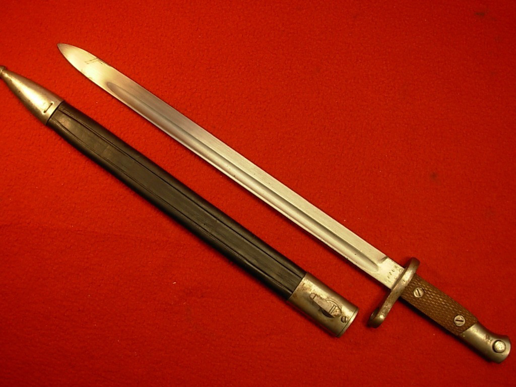 Spanisches Artillerie Bajonett mit Lederscheide – schöner Zustand –