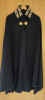 Zum Gebot/Verkauf steht ein Dunkelblauer Wollstoff Umhang/Cape warm und angenehm zu tragen zusammen gehalten wird diese mit einer Messingfarbenen SChließe. Der Kragen hat eine goldfarbene Verzierung. Die Gesammthöhe beträgt ca. 180 cm.