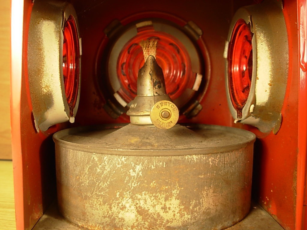 Alte Eisenbahnerlampe – 1959 – rot lackiertes Stahlblechgehäuse mit Brenneinsatz –