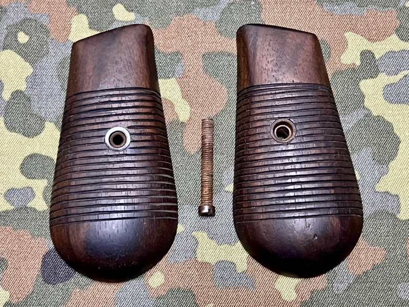Die Griffschalen befinden sich in einem ausgezeichneten Sammlerzustand, wie man den Bildern gerne entnehmen kann. Dazu die originale Schraube. Was will man mehr?