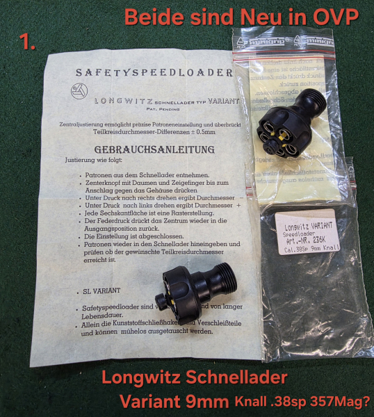 1.) Longwitz Speedloader Variant Magazin Trommel Revolver Schnellader 9mm Knall .38 Spezial 357 Mag