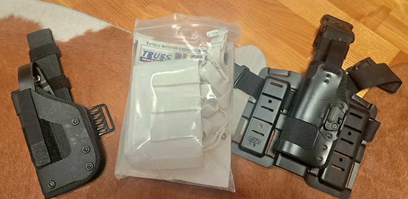 1 x Beinholster links Dasta 10, 1 x Beinholster links Uncel Mike’s und i x Truss Tactical Retention Undercover Suspension System Holster Size 44-45 ab1 € aus Auflösung, Alle Holster haben keine sichtbaren Beschädigungen und sind rein Optisch nicht getragen worden, Zustand siehe bitte auch Bilder.