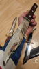 Zum Angebot kommen hier zwei große, und ein seeehr großes Bowie Messer! Zum Größenvergleich die 2€ Münze ^^