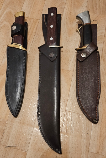 Eins von Linder, das andere von Magnum, und Frost cutlery. Vorallem letzteres hat eine wunderschön geformte Klinge mit kräftigem queerschnitt. Das Linder ist von der Größe her mehr als aussagekräftig... ^^