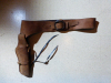 Ich verkaufe einen gebrauchten Westerngürtel mit Revolverholster und Patronenschlaufen aus Leder. Made in Mexiko. Die Nähte sind fest. Beinriemen, Sicherungsriemen usw vorhanden. Das Holster stammt aus einer Erbschaft.