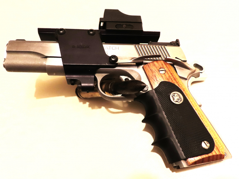 Wenig gebrauchte Montage aus dem Hause B-Square mit integrierter Picatinny-Schiene. Passend für Colt Government 1911 und baugleiche Modelle wie Norinco, Springfield o.Ä. Zum Gebrauch müssen keine Veränderungen an der Waffe vorgenommen werden. Zugehörig ist ein verlängerter Schlittenfanghebel . ACHTUNG: Sie bieten nur auf die Montage. Die Waffe, das Leuchtpunktvisier sowie die Patrone dienen nur der bildlichen Darstellung und gehören nicht zum Angebot!!!!! Versicherter Versand mit Sendungsverfolgung. Abholung auf Anfrage möglich. Kein Versand auf Inseln oder an Packstationen. Auslandsversand nur nach vorheriger Anfrage, oder Lieferung an eine deutsche Kontaktadresse. Hinweis: Mit Abgabe eines Gebotes verzichten sie auf die gesetzlichen Gewährleistungs-und Rückgaberechte, da es sich ausdrücklich um einen Privatverkauf handelt. Alle in dieser Auktion genannten Marken-bzw. Firmennamen sind Eigentum des jeweiligen Rechts-Inhabers. Urheberrechte werden hierdurch nicht verletzt. Bitte beachten sie auch meine anderen Angebote. Viel Erfolg beim Bieten!