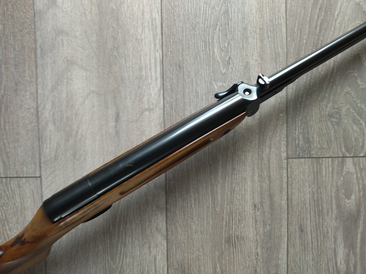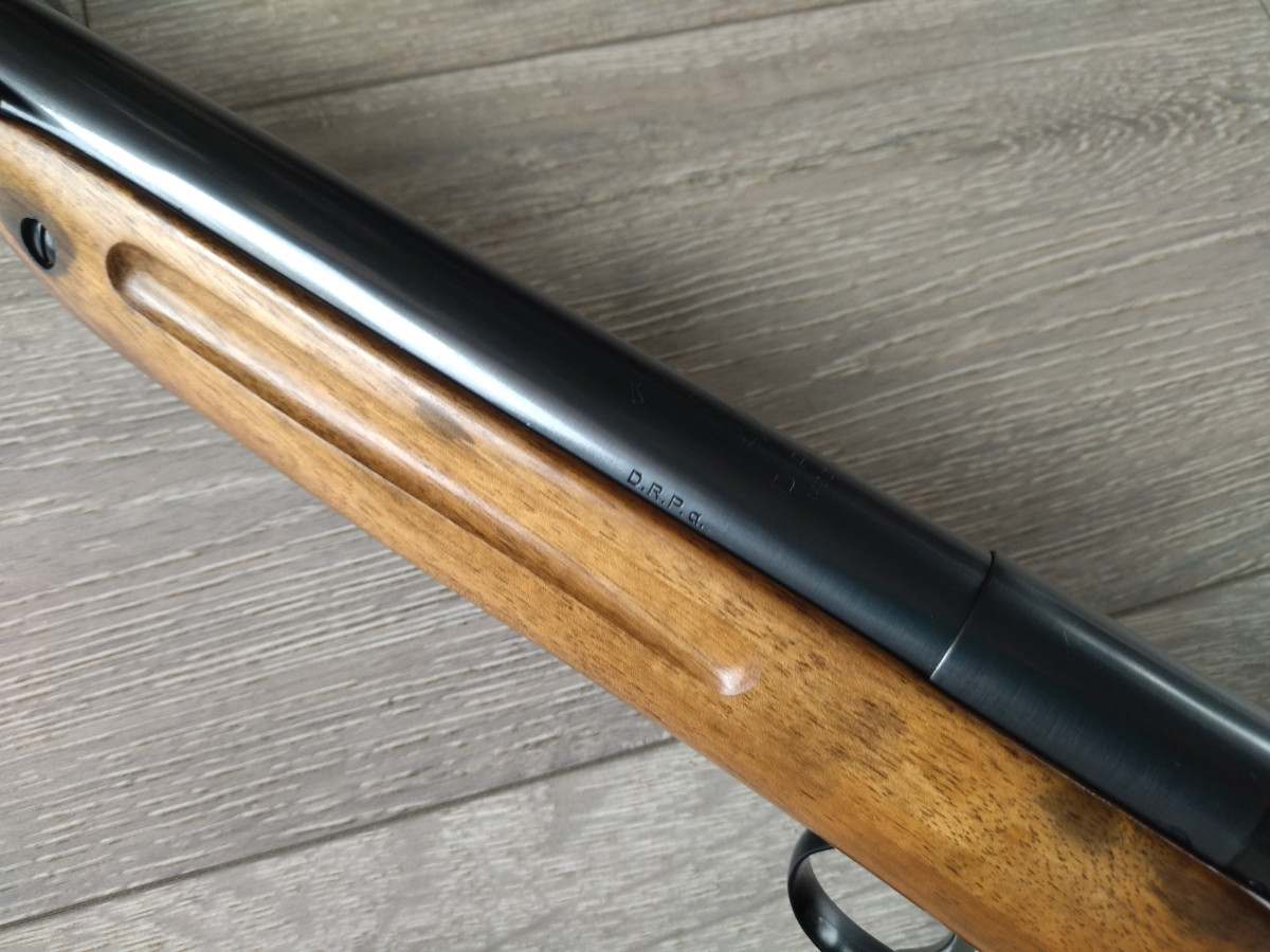 Das Luftgewehr befindet sich in einem sehr guten und voll funktionsfähigen Zustand. Ausgerüstet mit verbesserte Abzugseinheit, welche eine weiche Einstellung bietet. Mechanik ist in perfekter Kondition, besteht aus allen originellen Teile, nichts wackelt sich, schiesst mit höher Schussleistung (175 m/s) und Präzision. Herstell Nummer "65" findet man am Ladewalze und passende Abdeckplatte. Brunierung ohne Rost, Schaft aus hochwertigem Nussbaumholz, keine Brüche, keine Rissen, nur leicht verdunkelt im Bereich von Schaftschrauben, und bei Stahl Schaftkappe. Mehr Bildern gerne per Mail.