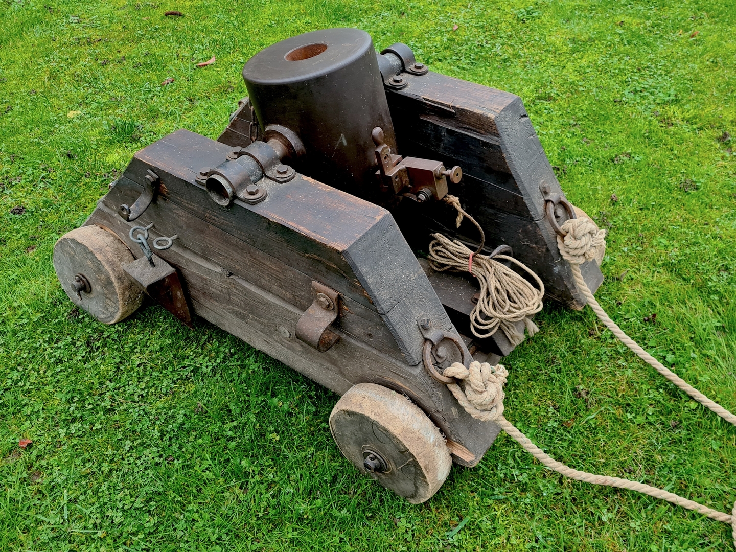 wir dürfen Ihnen einen außergewöhnlichen und sehr hochwertigen Böller (Perkussionszündung) anbieten im Kaliber 60 mm. Es handelt sich bei diesem Objekt um eine Einzelanfertigung eines Pulverschützenvereins, welcher sich leider auflöste. Die Beschusspapiere sind ebenfalls vorhanden. In diesen befand sich auch eine Fotografie, auf der dieser Böller beim Umzug eines städtischen Volksfestes zu sehen ist. Der Beschuss muss erneuert werden. Daher wird der Böller hier als Deko-Objekt angeboten.