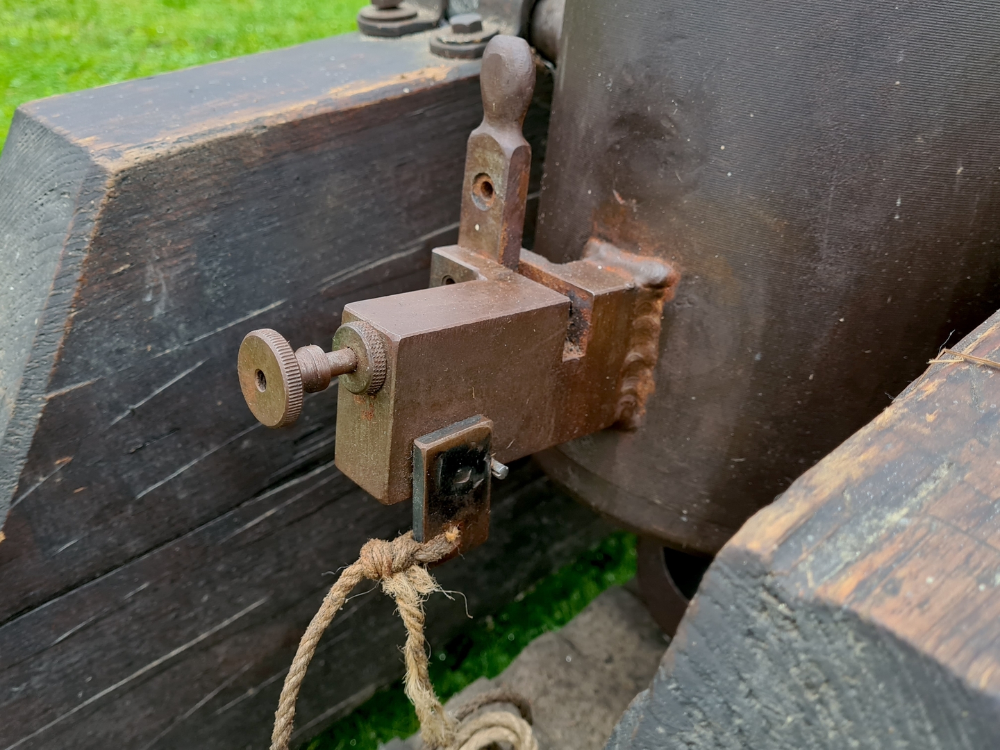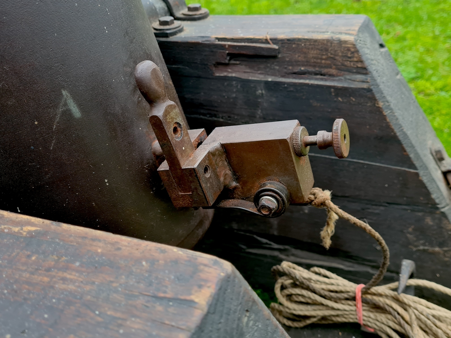 Der Zustand ist in Anbetracht des Alters gut. Wir haben nur oberflächlich den Böller entstaubt. Er ist unberührt. Die Mechanik ist gängig – Spannen und Abschlagen funktionieren tadellos. Auch die Holzelemente sind stabil.