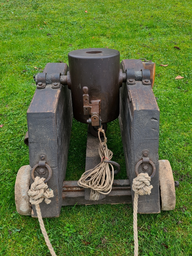 Maße: ca. 90 cm lang x ca. 58 cm breit x ca. 50 cm hoch. Der Durchmesser des Laufes beträgt ca. 19 cm. Der Böller mitsamt Lafette sind sehr schwer. Wir schätzen ca. 90 kg.