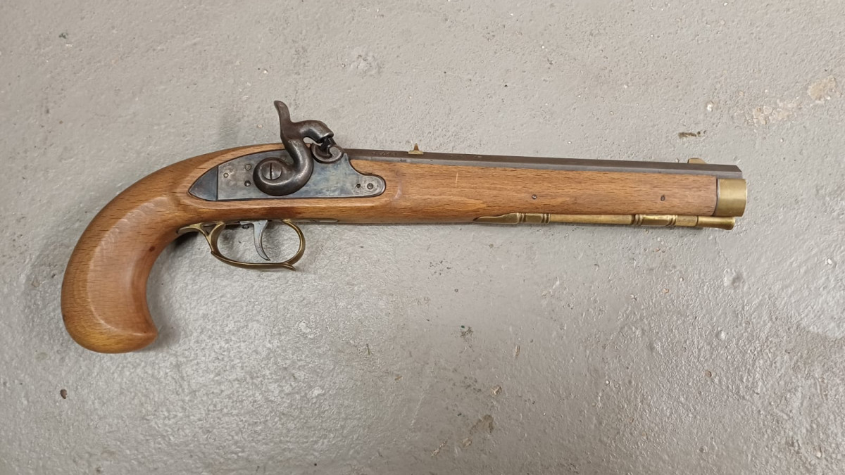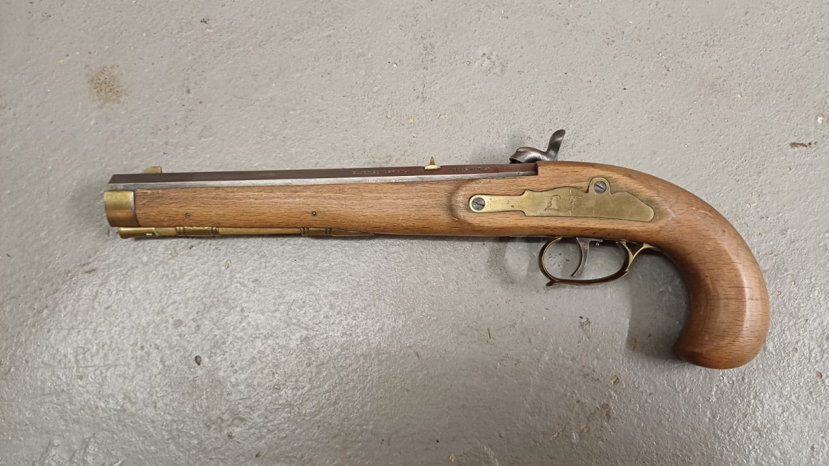 Vorderladerpistole aus Nachlass Kaliber .45 Perkussionszünder, gebraucht, guter Zustand, Lauf gut
