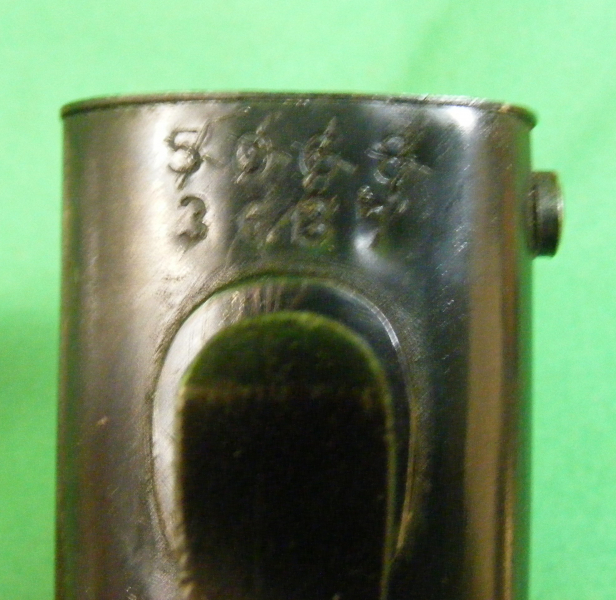Bajonett und Scheide identischer Hersteller und Jahr. Nummer der Scheide wurde verändert, passsend zum Bajonett.Privatverkauf, die Ware wird unter Ausschluss jeglicher Garantie oder Gewährleistung verkauft. Die Haftung auf Schaden­ersatz wegen Verletzungen von Gesundheit, Körper oder Leben und grob fahrlässiger und/oder vorsätzlicher Verletzungen meiner Pflichten als Verkäufer bleibt davon unberührt.