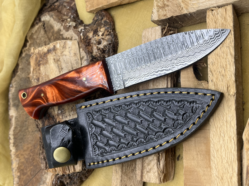 • Typ: Jagdmesser aus echtem, mehrlagigem Damaststahl (über 200 Lagen)