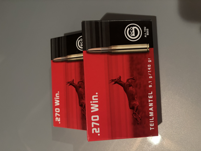 Zum Verkauf stehen 2 Schachteln (40 Patronen) Geco Teilmantel 9,1g im Kaliber 270 Winchester. 50€ für 2 Pakete.
