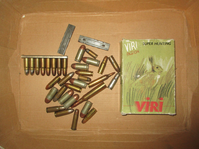 Geliefert werden : 10 x 20/70 Schrot #5, 8 x .45 ACP 1943 Stahlhülse, 7 x div. Mauser Exp. 9mm Steyr, 8 mm Lebel, 12 x 7,63 Mauser, 7,62 Tokarev, 2 x 7,65 Schweden,1 x DWM 7,63 M Expatr., 1 4,3 x 45 DAG, 1 x 6,5 x 57 R. Dabei 2 Ladestreifen 98k 1940+44, 1 x Streifen C96 ?.