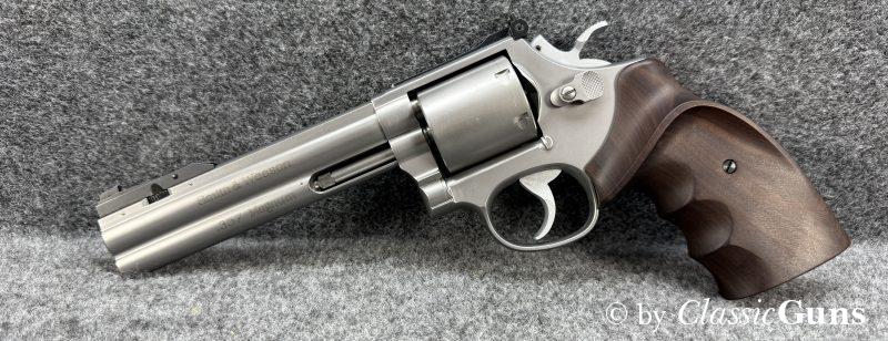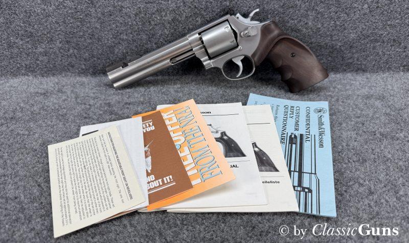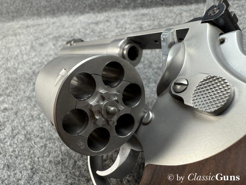 6“-Lauf mit neuwertigem Zug-/ Feldprofil, ungeflutete Trommel mit blanken Trommelbohrungen, NILL-Griff aus Nussbaum und mit Daumenauflage, einwandfreier Schlossmechanismus und hervorragender DA/SA Abzug. Hervorzuheben ist das für vier Distanzen voreinstellbare Korn. Äußerlich sind keine nennenswerten Gebrauchsspuren vorhanden. Die Schussbelastung dieser Waffe dürfte sehr gering sein. Die Lieferung erfolgt mit den abgebildeten Papieren, weiteres Zubehör ist nicht vorhanden.