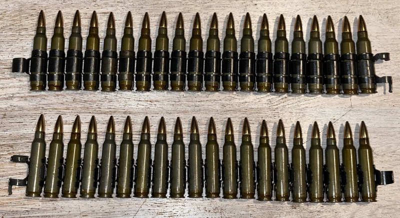 Mehrere Gurtstücke vorhanden. Pro Auktion werden 20 Hülsen mit Glieder verkauft (auch wenn mehr auf dem Bild zu sehen ist). Sind mehr gewünscht dann entsprechend die Menge anpassen (1 x = 20 / 2 x = 40 / 3 x 60 usw.)