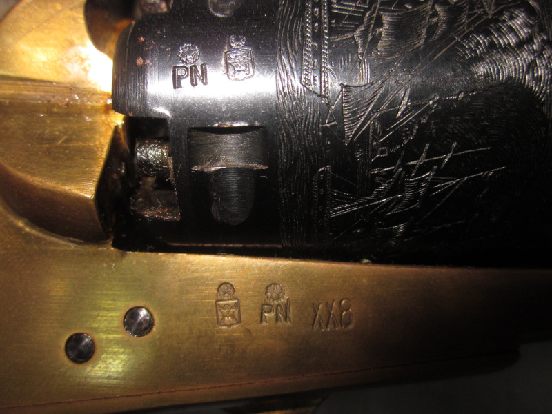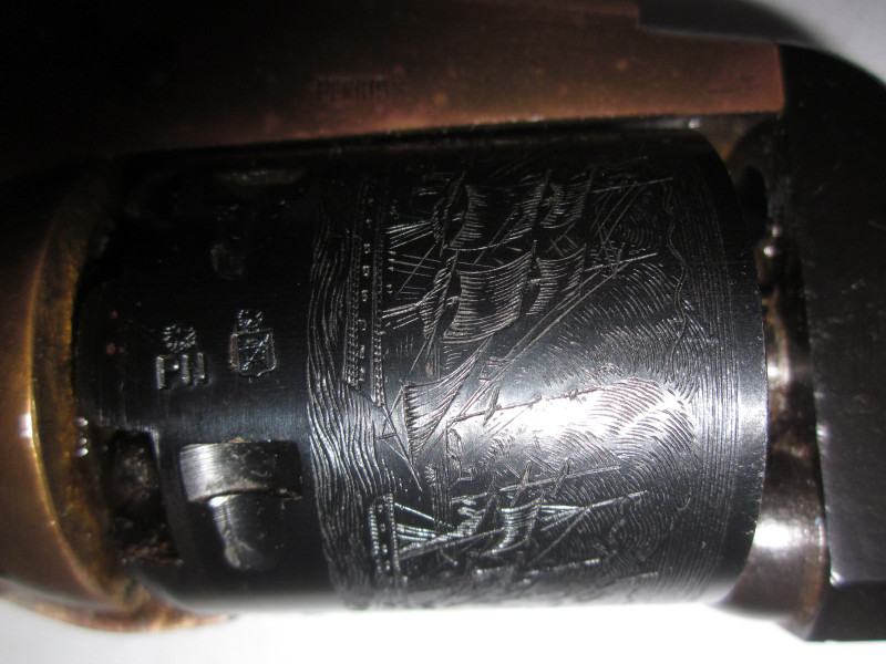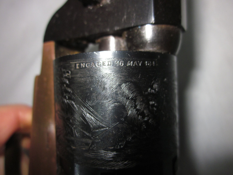 Die Angabe "Engaged 16 may 1843" bezieht sich auf die Schlacht von Campeche, bei der zwei texanische Schiffe die mexikanische Flotte angriffen. Samuel Colt verwendete diese Schlacht als Motiv für Gravuren auf seinen Revolvern, wie dem Colt 1851 Navy, um seine Waffen mit einem historischen Ereignis zu versehen.