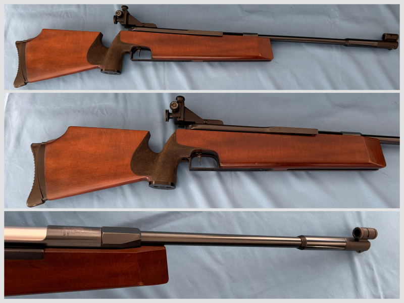 Aus Nachlassauflösung bieten Sie hier auf ein Luftgewehr Feinwerkbau Mod. 300S mit Diopter in einem guten Zustand, siehe Fotos. Das Gewehr funktioniert tadellos und hat Gebrauchsspuren. Die originale Brünierung ist noch gut, lediglich am Spannhebel und oben auf der Hülse sind leichte Lagerspuren. Das Modell 300S zeichnet sich durch seine stabile Bauart aus und ist eigentlich unverwüstlich. Das Gewehr ist technisch tiptop, wurde vor einem Jahr gewartet, Dichtungen und Feder gewechselt. Es ist die neuere blaue Feinwerkbau Lauf-Dichtung und grüne Kolbendichtung verbaut, dass Gewehr hat sehr guten Druck (V0=179 m/s) und ist fit für die nächsten 50 Jahre! Ein ehrliches Stück, zum guten Preis. Bei Fragen einfach mailen. EU-Versand 23€.