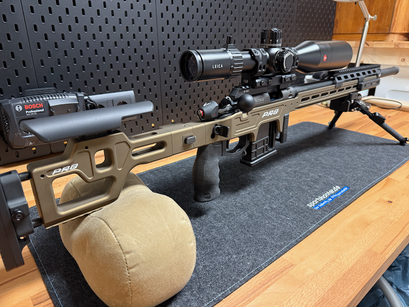 Montiert ist auf der Waffe ein Leica PRS 5-30x56 Zielfernrohr. Dieses ist ebenfalls bandneu. Sowohl auf die Waffe, als auch auf das ZF und alle montierten Teile sind noch ca. 1 Jahr Garantie. Eine Kopie der Rechnung für die Waffe, als auch alle montierten und mitgegebenen Teile liegt bei!