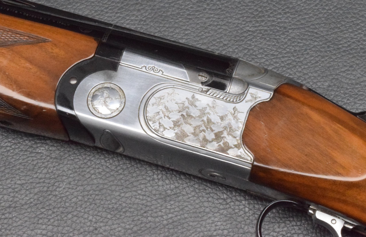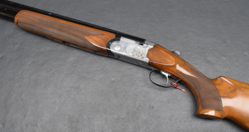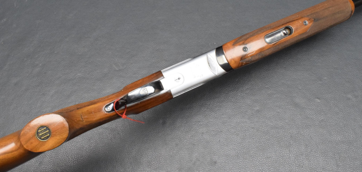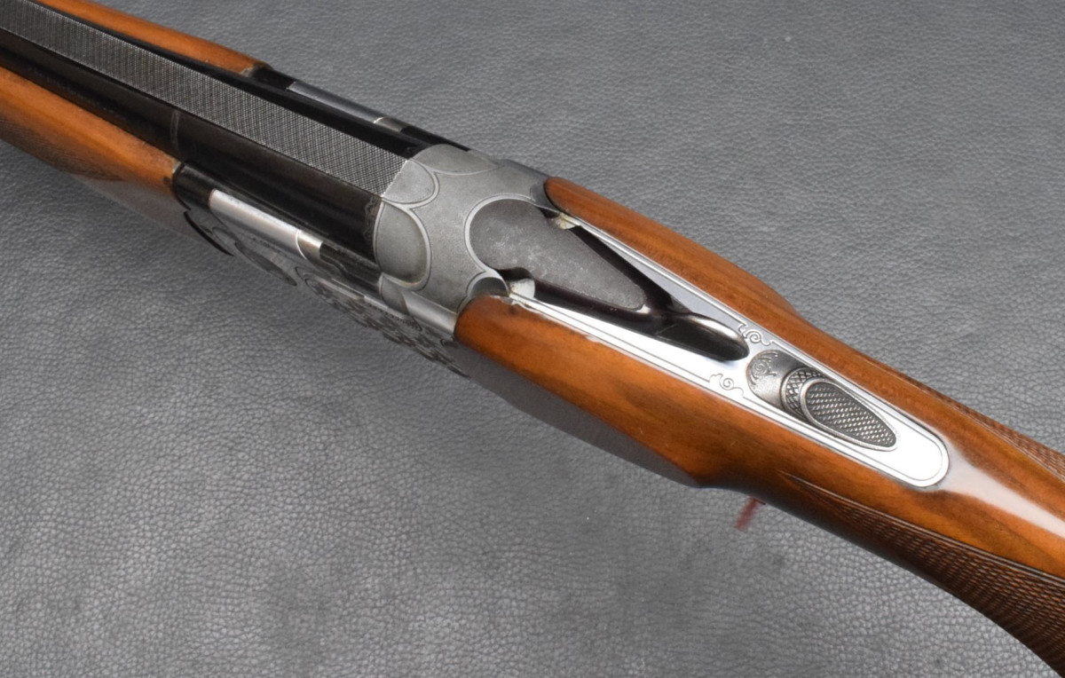 Läufe sehr gut, Verschluß dicht, Brünierung 97%, Schaft mit jagdlichen Gebrauchspuren,