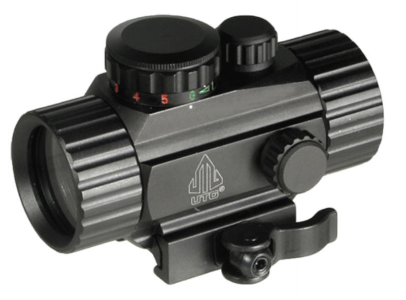 Artikelnummer: SCP-RG40SDQ klarer 4 MOA Leuchtpunkt in rot oder grün, optimal für unterschiedliche Umgebungen großes Sehfeld und unendlicher Augenabstand ermöglicht ein sehr schnelles Anvisieren anti-reflex-Beschichtung in smaragdgrün Schnellmontage ohne Werkzeug 1 MOA pro Klickeinstellung abnehmbare Staubschutzkappen inklusive Batterie (CR2032), Reinigungstuch, Inbusschlüssel, Bedienungsanleitung Marke: UTG Modell: Red Green Dot Sight 4 MOA Single Dot Vergrößerung: 1-fach Objektivdurchmesser: 30 mm Tubusdurchmesser: 38 mm Augenabstand: unendlich Austrittspupille: 25 mm Klickwert: 1/2 inch @ 100 yards Parallaxeeinstellung: unendlich Länge: 95 mm Höhe bis Mitte Objektiv: 25,6 mm Gewicht: 238 g Material: Aluminium, mattschwarz eloxiert Batterie: 1x CR2032 3V Lieferumfang: Dot Sight, Batterie, Anleitung, Staubtuch, Inbusschlüssel
