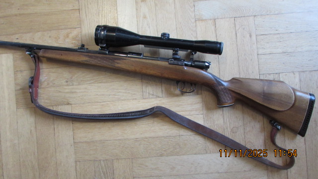 Hersteller steht nicht auf der Waffe (Angaben lt. NWR), Dt. Backe, Dt. Stecher, Flügelsicherung gültiger Beschuss ist vorhanden, Kimme und Korn, Riemenbügelösen und Riemen, Magazin für 5 Patronen, ZF Schmidt & Bender 8x56 Abs. 1 auf SEM in gebrauchtem Zustand.