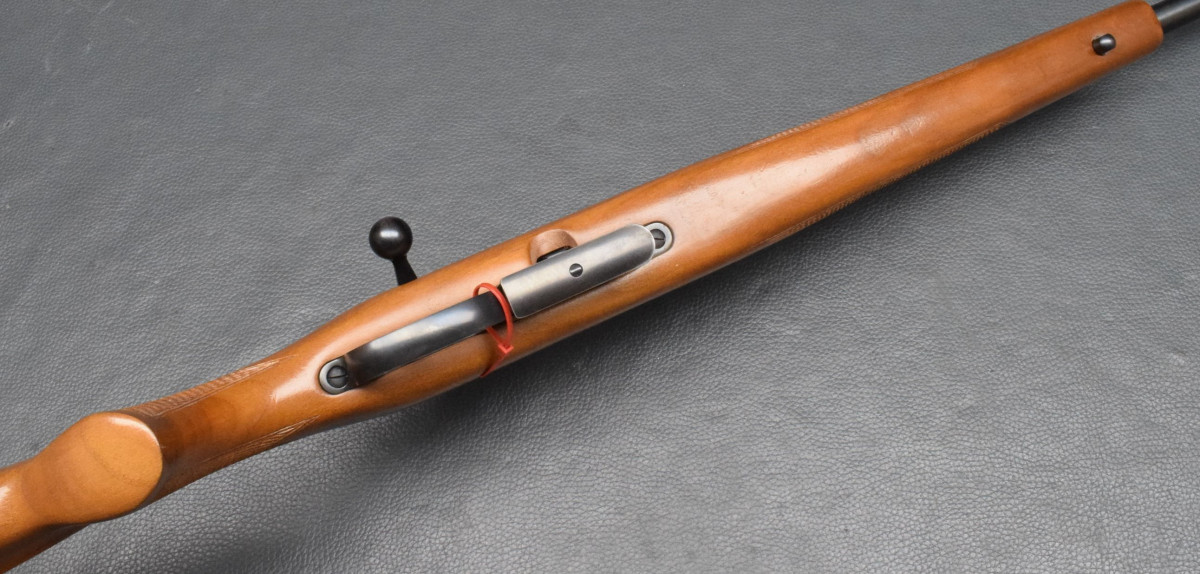 Direktabzug, seitliche Schiebesicherung, gebogener Kammerstängel, 4-Schuß Magazin.