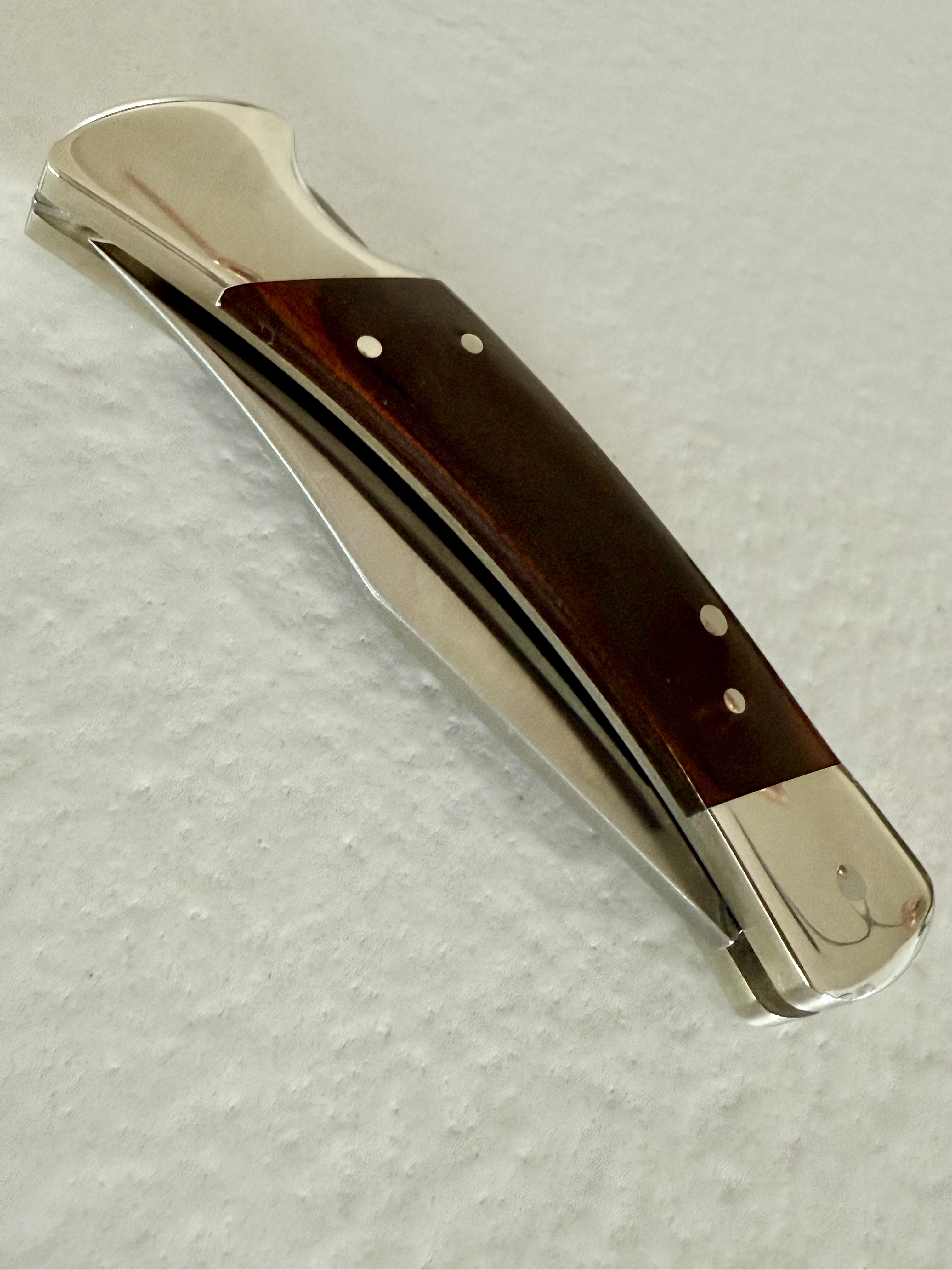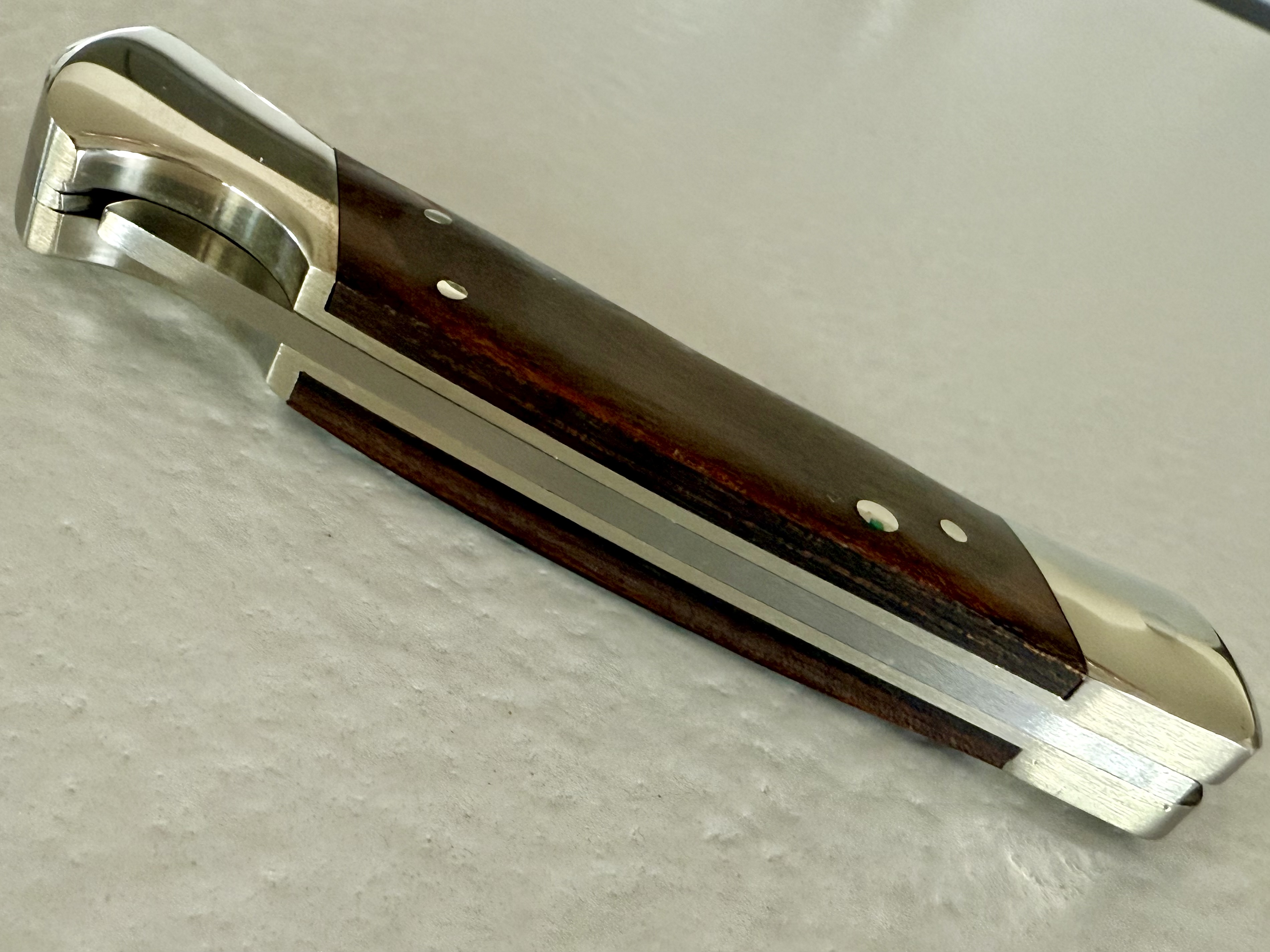Der Griff besteht aus "Woodcraft Handles - made of Golden Brown laminates hand-crafted to a high luster"