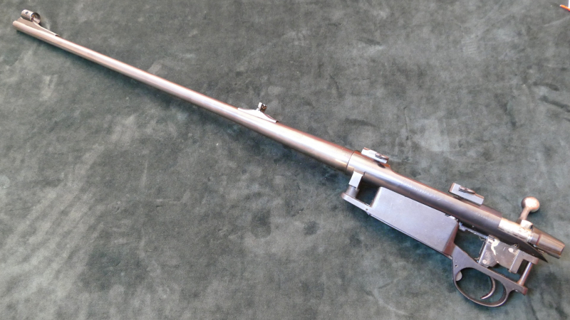 Zoli Mod. 1900, Kal. 9,3x62, altersgemäß guter Zustand (der Schaft wurde leider durch einen Unglücksfall zerstört). Die brünierten Metallteile sind in einem sehr guten Zustand, stellenweise ganz leichter Flugrost. Die Kammer hat allerdings ebenso wie der Zubringer im Magazin ein paar ordentliche Rostflecken. Die Waffe verfügt über einen Rückstecher, eine seitliche Sicherung, ein Klappdeckelmagazin und Montagebasen für eine Leupold Quickreleasemontage (bisher offensichtlich wenig bis gar nicht genutzt).