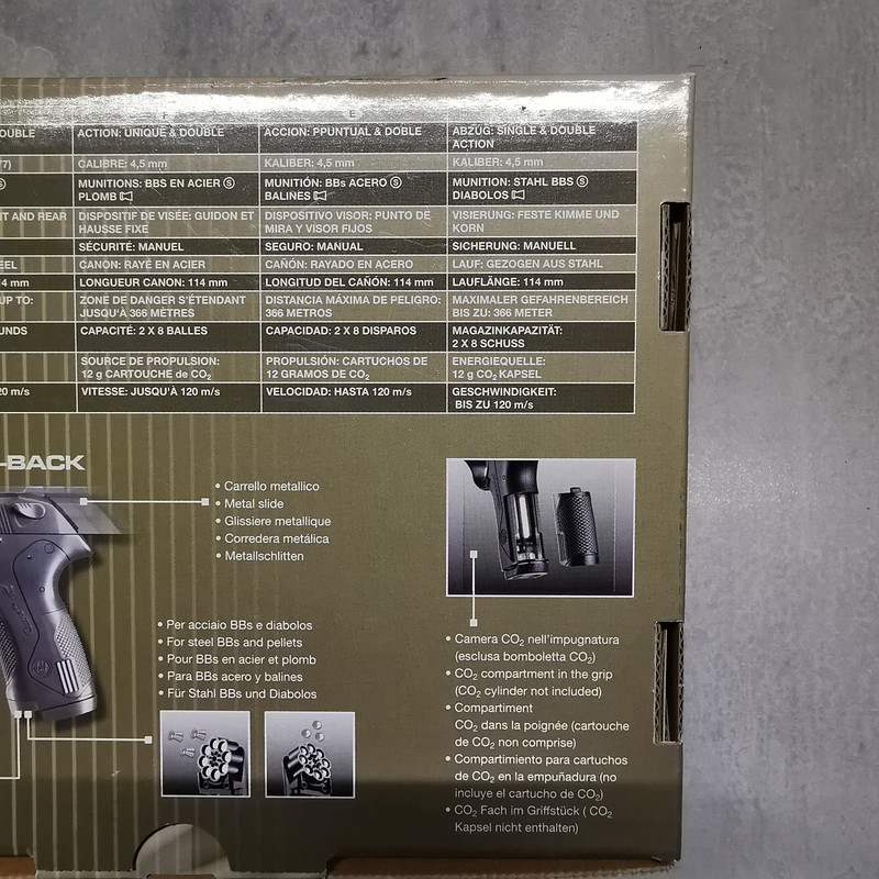 Die Waffe ist in einem fast neuwertigen Zustand. Leichte Gebrauchsspuren am Magazin sind zu erkennen. Der Schlitten ist beweglich (Blow-Back) und der Lauf ist gezogen. Single & Double-Action. Das Magazin fasst 2x je 8 Schuss. Sie ist frei ab 18 Jahre und trägt das "F" im Fünfeck. Es wurde eine Co² Kartusche über Nacht eingesetzt. Waffe hält den Druck. Also ist sie funktionsfähig. Den Rest entnehmen Sie bitte den Bildern. Privatverkauf, keine Garantie oder Rücknahme.