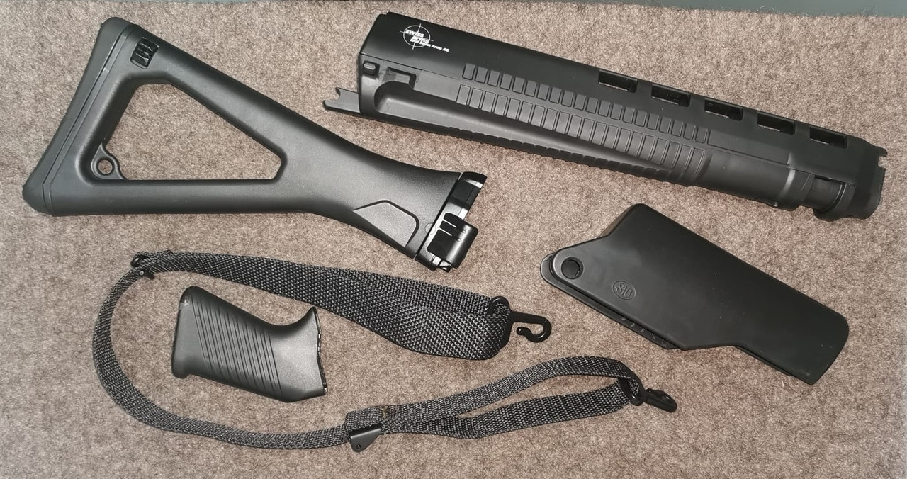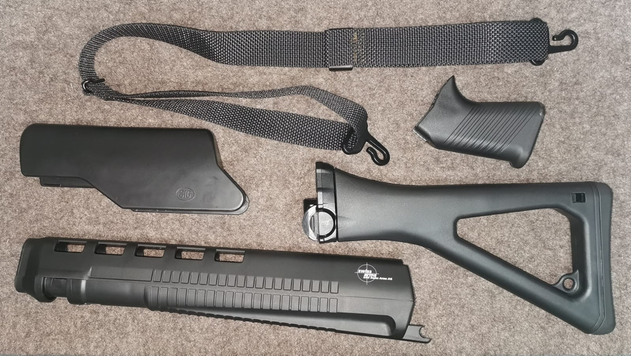 SIG 550 / PE90 Schaftset schwarz mit Gewehrriemen schwarz.