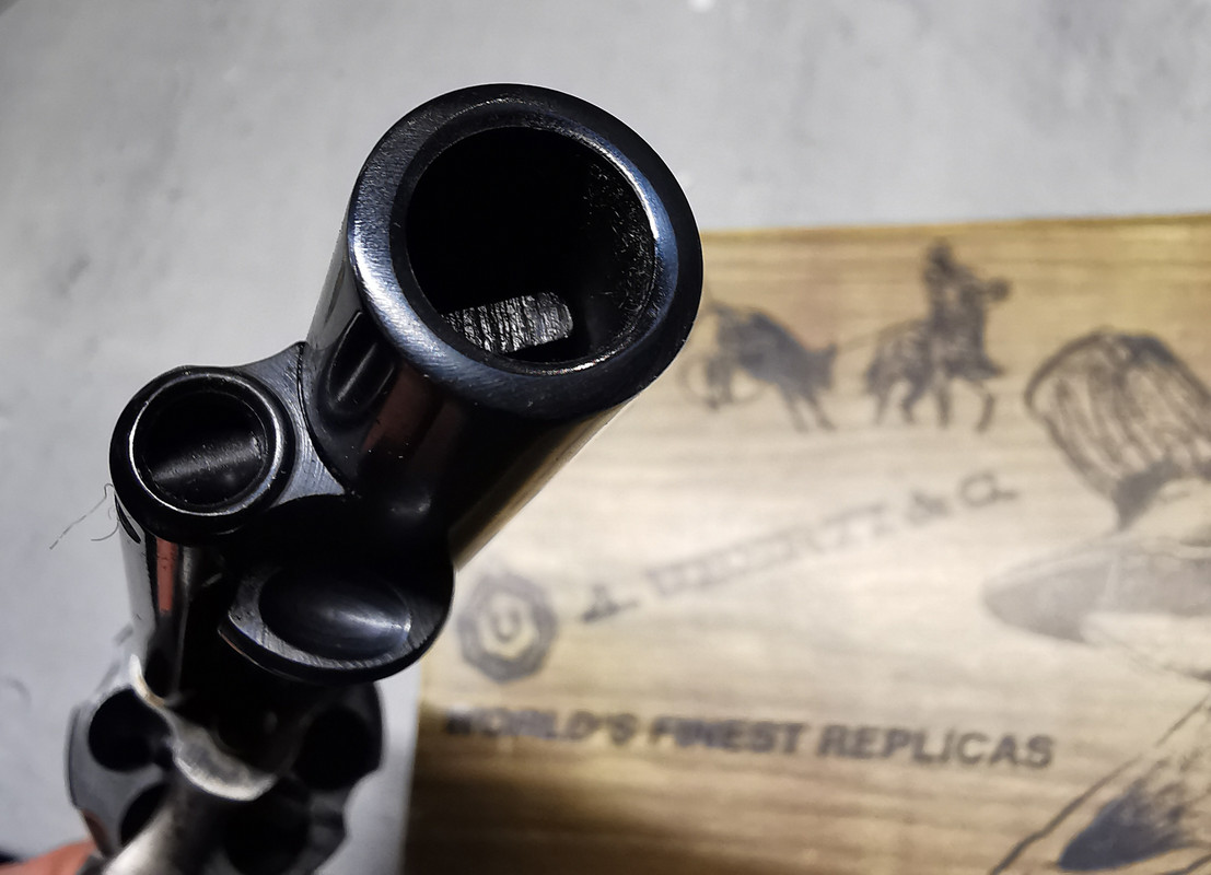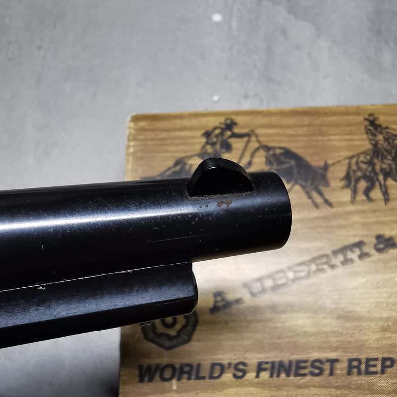 Dieser Revolver ist für sein Alter in einem Top Zustand. Am Korn sind aber leichte Roststellen durch den Lötzinn aufgetreten. Sonst hat die Waffe fast keine nenneswerten Gebrauchsspuren. Das System ist "buntgehärtet" und der Rest ist "gebläut". Traumwaffe für jeden Western-/Schreckschusssammler. Der SSA ist natürlich komplett aus Stahl gefertigt. Die Griffschalen sind aus ausgesuchtem Holz. Die Trommel ist entnehmbar. Die Trommelachse hat eine kleine optische Beschädigung. Ob die Verpackung dazugehörig ist kann man nicht garantieren. Der Sixshooter ist frei ab 18 Jahre. PTB: 719. Den Rest entnehmen Sie bitte den Bildern. Privatverkauf, keine Garantie oder Rücknahme.