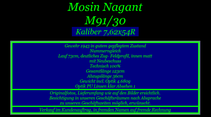 Artikel-ID: 20170878  •  ArtikelNr. des Verkäufers: 12345  •  Kategorie: Sportgewehre > Ordonnanzwaffen