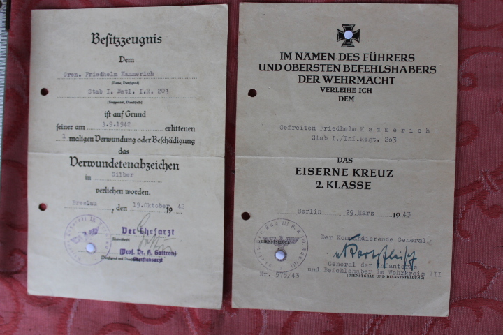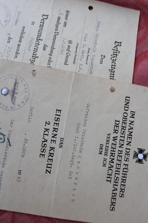 Wehrmacht 2 Urkunden. EK + Verwundeten Abzeichen. Originale!!!