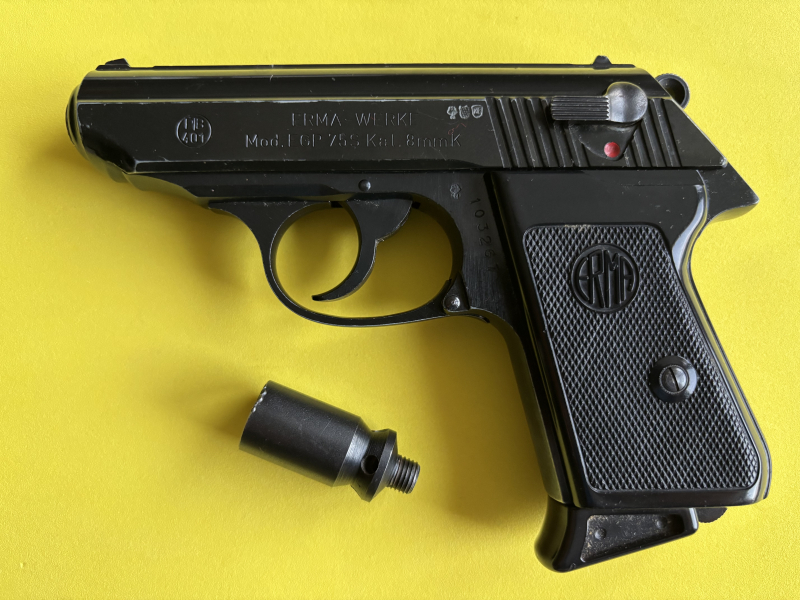 Schreckschusspistole ERMA EGP 75 s. Kaliber 8mm Knall, PTB 401. gebraucht, voll funktionstüchtig, inklusive Abschussbecher. Bezahlung- Überweisung nach Auktionsende, Schneller Paketversand mit Sendungsnummer.